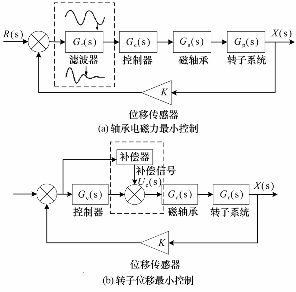 傳統(tǒng)意義上的磁懸浮轉(zhuǎn)子不平衡補償多是考慮磁軸承單獨支承的情況,對于磁軸承為主要支承,其他支承方式為輔助支承情況下的不平衡振動控制,尚未見相關(guān)研究。例如,近年來興起的磁+氣混合軸承支承,轉(zhuǎn)子不僅受到電磁力,還受到動壓效應(yīng)產(chǎn)生的氣浮力,轉(zhuǎn)子的不平衡周期振動在受到控制器周期控制力的同時,還受到由于氣隙周期變化產(chǎn)生的周期性波動氣浮力的影響,對于此類支承方式下的轉(zhuǎn)子,首先需要通過研究其動力學特性獲取轉(zhuǎn)子的不平衡振動特征,然后進行不平衡振動的控制,這一研究仍待開展。